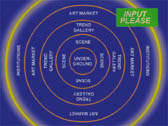 | Art Games Videos, Sound Marcus Maeder Zürich 1998 Video-Clips von simulierten Computer-Games greifen ironisch und affirmativ direkt strukturelle und rituelle Motive des traditionellen Kunstkontext und der damit verbundenen Idee von Erfolg auf. In einem turbulenten "Institutional Rally" durch den hindernisreichen Karrieren-Tube flitzt man an allen wichtigen Institutionen des westlichen Kunstzirkus vorbei. An der Slotmaschine "The Curator‘s Choice" gewinnt man nur dann, wenn dreimal der Kopf des gleichen, international bekannten Star-Kurators auftaucht, und bei "Chart Dart" entscheidet sich schnell, auf was man mit der eigenen Arbeit eigentlich zielt. |