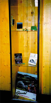 | ...ein artig kommen und gehen 2 Ausstellungen in der Halle des Hauptbahnhofs Zürich Die Arbeiten entstanden im Rahmen einer grösseren Gruppenausstellung. Zur Verfügung stehen genormte Vitrinen, welche in der Mitte der Bahnhofshalle des Hauptbahnhofs Zürich aufgebaut wurden: Verkehrsverband Emmental Vitrine Zürich 1994 Als Gast wird von mir der Verkehrsverband Emmental eingeladen, sich mit den üblichen Mitteln der Tourismuswerbung in meinem Schaukasten zu präsentieren. Wanderbücher, Wanderkarten, Kochbuch, Pins und eine Käseuhr sowie einige Werbebilder vermitteln ein Porträt einer Gegend, gleichzeitig aus persönlichen Motiven eine Art Heimatbild. Obschon alle verwendeten visuellen Codes bestens bekannt und im Umfeld des Bahnhofs auch mehrfach vertreten sind, vermittelt die Installation durch den verfremdenden Effekt des Kunstausstellungs-Kontext und durch die ästhetische Mittelmäßigkeit der Werbemittel ein durchaus persönliches, liebenswertes und fast authentisches Bild der porträtierten ländlichen Gegend. Kunsthaus Glarus Vitrine Zürich 1995 Gast in diesem Jahr ist das Kunsthaus Glarus, welches von mir in einer speziell gestalteten Präsentation vorgestellt wird. Das Kunsthaus Glarus verkörpert das bürgerliche Ideal einer Kunstinstitution perfekt. Träger des Hauses ist der 125-jährige Glarner Kunstverein. Die eigene Sammlung ist aus Stiftungen zweier wohlhabender Glarner Bürger und Kunstbewunderer hervorgegangen und in den 50er Jahren wurde das repräsentative Gebäude von einem bekannten Schweizer Architekt gebaut. Heute zeigt das Kunsthaus in wechselnden Ausstellungen Kunst mit regionalem Bezug, Bestände aus der Sammlung und neue, zeitgenössische schweizerische und internationale Kunst. Die Präsentation des Kunsthauses an der bestens frequentierten Lage im Hauptbahnhof Zürich täglich 350´000 Pendler im Rahmen dieser Ausstellung hat einen doppelten Effekt, Publicity (Voraussetzung für das Funktionieren einer traditionellen Kunstinstitution) und Reflektion (Ansätze und Ansprüche des aktuellen Kunstschaffens setzen Strukturen immer wieder ausser Kraft). |