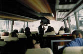 | Fahrt ins Blaue Fahrt ins Blaue I, Emmental 1989 Fahrt ins Blaue II, Hannover - Harz BRD/DDR 1990 Fahrt ins Blaue III, Shedhalle Zürich 1990 Eine kleine Gruppe von Gästen wird auf eine Fahrt ins Blaue eingeladen. Die Reise führt von einem Ort ausgehend durch verschiedene Räume, Gegenden und je nach Thema Situationen. Die Reisegruppe macht unterwegs an vorher von mir ausgewählten Orten Halt. Es finden verschiedene Besichtigungen und Führungen statt. Möglicher Höhepunkt des Ausflugs bildet ein Essen in einem Gasthof. Auf dem Heimweg erhalten jeder Teilnehmer und jede Teilnehmerin ein Abschiedsgeschenk. Die Fahrt ins Blaue verstehe ich nicht als inszeniertes Spektakel, sondern als Reise durch reale Umfelder, vorgefundene Räume und soziale Situationen. Die feine Differenz zwischen dem, was ist und als solches zum Alltag gehört, und dem was aus der bequemen Situation des Reisenden heraus aufgehoben in der Gruppe der Besucher beobachtet wird, tritt im Laufe der Fahrt unweigerlich spektakulär in Erscheinung. Die Fahrt ins Blaue, je nach Standpunkt als Expanded Performance, Freizeitangebot oder soziales Ereignis beschreibbar, interessiert mich vorallem als ein Experiment im gesamtkulturellen Zusammenhang, nicht als Kunstform, ohne dabei zu ignorieren, dass sie auch aus der Perspektive des Kunstkontexts attraktiv ist. Es stellt sich heraus, dass die Fahrt ins Blaue eine Art Methode ist, um auf der Grenze von Alltag und Kultur Untersuchungen über Formen und Rituale der Rezeption anzustellen. Das Gefühl zu Reisen, die Überwindung des physischen und seelischen Stillstandes schaffen eine gelöste - von den Befindlichkkeiten alltäglicher Momente losgelöste - Atmosphäre. Die fehlende Definition des genauen Zwecks und der exakten Bedeutung der sonst gut bekannten Veranstaltungs-Gattung Fahrt ins Blaue entsprechen der offenen Situation. Weil in dieser offenen Disposition alle Beteiligten ihre eigenen Zuordnungen machen und diese auch häufig wieder in Frage stellen, sind die Erlebnisse kontrovers, die Haltungen - von Ablehnung und Zynismus über Belustigung bis zu engagiertem Interesse - verschieden. Die unterschiedlichen Standpunkte innerhalb der Reisegesellschaft generieren den beabsichtigten Diskurs. Situation und Umfeld, ein komplexes Gefüge von Zeichen und Abläufe und ein ganz bestimmter Stil der Kommunikation bestimmen die persönliche Wahrnehmung weitaus stärker als ein einzelnes optisches oder ästhetisches Signal. Diese Erkenntnis ist fundamental für die Entwicklung neuer Arbeitsformen und Haltungen, wie sie etwa in einem um soziale Dimensionen erweiterten Installationsbegriff, in der Kontext-Kunst und in den Social/Cultural Studies zum Ausdruck kommen. Beschreibung Fahrt ins Blaue 2 Die Reisegesellschaft bricht im Sommer 1990 mit einem Reisebus von Hannover aus zu einer Fahrt ins Harzgebirge auf. Der Tagesausflug führt über die alte Kaiserstadt Goslar und das Gebiet des West-Harz in der BRD zu einem Bergwerksmuseum. Ein kurzer Spaziergang auf den Gipfel des Sonnenbergs eröffnet einen Blick auf die weite Hügellandschaft des Harz, mit seinen typischen Tannenwäldern, welche durch den sauren Regen stark geschädigt sind. Vom Aussichtspunkt Brockenblick, an der deutsch-deutschen Grenze aus, kann durch installierte Fernrohre der sagenumwobene Brocken besichtigt werden. Er liegt bereits auf dem Gebiet der DDR in einer für die Öffentlichkeit nich zugänglichen, militärischen Sperrzone (Warschauer Pakt). Ihm gegenüber, auf dem Wurmberg (BRD) sind Spuren prähistorischer Kultanlagen erhalten geblieben und neben einer Luftseilbahn und einem Skilift für den Tourismus hat auch hier das Militär (Nato) einen Horchposten installiert. Die Reise führt dann über einen der neuen, provisorisch eingerichteten Grenzübergänge in die DDR, wo in einem abgelegenen Berggasthof, welcher bis vor kurzem als Erholungsheim für Parteifunktionäre diente, ein gemeinsames Nachtessen stattfindet. Als Unterhaltungseinlage tritt ein dreiköpfiges Team von Fahnenschwingern aus der Schweiz auf. Dann führt die Reise wieder zurück nach Hannover. Thematisches Umfeld dieser Reise bildet die Politik, welche an dieser Stelle (Harz) und zu diesem Zeitpunkt (1990) auf brisante Weise mit einer Exkursion durch die Landschaft erlebbar gemacht werden kann. Das Spektrum reicht von der Mythologie (prähistorische Kultstätte, später entstandene Sagen von Heiden und Hexen) über die Geschichte (Kaiserpfalz Goslar, Macht durch eigenes Silber), die frühe Industrialisierung und die späten Folgen (Blei- und Silberbergwerke seit dem frühen Mittelalter, Bergbau im 19., Waldsterben im 20. Jahrhundert), die neuere Geschichte (Kalter Krieg, Grenze, Wiedervereinigungsdiskussion, wiedererstarkender Nationalismus) bis zur Landschaft als Konsum- und Erholungsraum (Tourismus, Alpenersatz). Beschreibung Fahrt ins Blaue 3 Ausgangspunkt der halbtägigen Rundfahrt ist Zürich. Ein Reisebus führt die Gäste zuerst zum Verwaltungssitz einer grossen Schweizer Bank, zu einer Besichtigung ins 4. und 5. Untergeschoss, wo in einer speziellen Sicherheitsabteilung Gold gelagert wird. Zürich ist weltweit der grösste Handelsplatz für Gold (in physischer Form), während in London Gold vorallem auf Papier gehandelt wird. Auf der Weiterreise werden im Bus Tom and Jerry Cartoons gezeigt. Die Fahrt führt zum Management-Ausbildungszentrum der Bank, welches in einem alten Schloss an schöner Lage über dem Bodensee eingerichtet wurde. In einer kommentierten Führung wird die Philosophie der klosterähnlich funktionierenden aber mit modernster High Tech ausgerüsteten Bildungsstätte erläutert. Im Vortragssaal findet ein Referat über Persönlichkeitsbildung im Rahmen der jährlich wiederkehrenden Management-Fortbildungskurse statt. Das gemeinsame Nachtessen in einem traditionellen Gasthof im naheliegenden Dorf wird durch Darbietungen eines Zauberkünstlers aufgelockert, welcher den anwesenden Vertretern der Bank Geldbeutel, Uhr, Krava