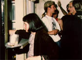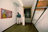 | The Pointer Verschiedene Aktionen und Ausstellungen, u.a. Dissimulation in Zusammenarbeit mit Hans Wermelinger, Konradstrasse 77 Zürich 1989 In einer zur Galerie umfunktionierten Wohnung werden nach Angaben von Künstlerkollegen und Kolleginnen simulierte Kunstwerke ausgestellt. Die kleine Installation mit einer Bar in der Küche und roten Sitzkissen auf den Stufen des Treppenhauses wird zur Erlebnislandschaft und The Pointer für einen Abend zum ultimativen Szenenereignis von Zürich. Vorgängig finden verschiedene Einzelausstellungen in der zur Wohnung gehörenden Besenkammer statt. Unter dem Titel Dissimulation führe ich einen Abend lang, beleuchtet durch eine auf mich gerichtete Endlosfilmprojektion, auf welcher ich den Gästen entgegenrenne, eine Bar. |