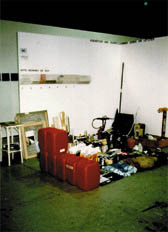 | Pro Arte Ausstellungsbeitrag zur Kunstszene Zürich Zürich 1989 In einer Koje der Messehalle werden von verschiedenen Künstlern überflüssige Gegenstände aus Keller, Atelier und Lager zusammengetragen und zu einer Art Flohmarkt zusammengestellt. Die Besucher der Ausstellung werden aufgefordert sich zu bedienen, wenn sie etwas Brauchbares finden. Die doppeldeutige Überschrift, mit grossen Lettern auf die Wand geschrieben, lautet Künstler und Künstlerinnen geben ihr Letztes und bezieht sich sowohl auf die materielle Situation vieler im Kulturbereich engagierter, welche trotz grossen Anstrengungen kaum überleben können, als auch auf die unausgesprochene Erwartung und die damit verbundene, weitverbreitete Meinung, dass Künstler in ihrer Arbeit ihr Innerstes und Intimstes offenbaren sollen. |