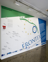 | Governing Europe: Agencies Installation, Wallpaper 2007 L'europe en devenir, Centre Culturel Suisse Paris in Zusammenarbeit mit Labor k3000 / TRANSIT MIGRATION Since the mid 1990ies a number of specialised and decentralised EU agencies have been established to support the EU Member States and their citizens. The objectives of the individual agencies are many and varied. Each agency fulfils an individual function defined at the time of its creation. Agencies introduce a degree of decentralisation and dispersal to the Community's activities. Tthey give a higher profile to the tasks that are assigned to them by identifying them with the agencies themselves. Some answer the need to develop scientific or technical know-how in certain well-defined fields, others have the role to integrate different interest groups and thus to facilitate the dialogue at a European (between the social partners, for example) or international level. Agencies have become important and representative tools in the context of new methods of governing Europe. A recently installed and controversaly discussed exemple is FRONTEX European Agency for the Management of Operational Cooperation at the External Border of the Member States of the European Union. Frontex (from French: Frontières extérieures) headquartered in Warsaw, Poland, is the external border security agency of the European Union. It is responsible for co-ordinating the activities of the national border guards in ensuring the security of the EU's borders with non-member states. Frontex was established by Council Regulation (EC) 2007/2004. The agency started to be operational on October 3, 2005 and was the first EU agency to be based in one of the members who joined in 2004. Special European forces of rapidly deployable border guards were created by EU interior ministers in April 2007 to assist in border control, particularly on Europe's southern coastlines. Frontex's European Patrols Network began work in the Canary Islands in May 2007. Frontex' "mission" is to help EU Member States implement EU rules on external border controls and to coordinate operational cooperation between Member States in the field of external border management. It is up to each member state to control its own borders, but the Agency will help ensure that they all do so with the same standard of efficiency. The Agency is managed by its Executive Director, Ilkka Laitinen. The agency initially struggled to recruit staff due to its location in Warsaw, which offered lower pay than some other cities, and the unclear agency mandate. At its disposal, the agency has 20 aeroplanes, almost 30 helicopters and over 100 vessels. Link: > www.frontex.europa.eu Related project: > MigMap - Governing Migration |