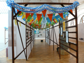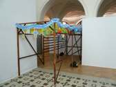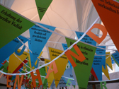 | "Münchner Wege" - Regierungslaube Installation im Rahmen von "Crossing Munich, Orte, Bilder und Debatten der Migration" Rathausgalerie, München Bernd Kasparek, Philip Zölls, Peter Spillmann Die Geschichte des Regierens der Migration in München entpuppt sich schon Ende der 60er Jahre als spezifisch münchnerisch: Bereits zu dieser Zeit prägte Oberbürgermeister Hans-Jochen Vogel „Münchner Wege“ und „Modelle“, die der Bundespolitik Jahrzehnte voraus waren. Im Zentrum stand nicht nur seine frühe Anerkennung, dass München eine Einwanderungsstadt sei, und dieser Tatsache Integrationspolitiken Rechnung tragen müssten. Auch der wissenschaftlich fundierte stadtplanerische Zugriff auf die ökonomische, soziale, demographische Entwicklung der Metropole trug seine Handschrift. Auch wenn der Planungseifer und -glaube in den folgenden Jahrzehnten nachließ haben auch spätere OBs Bundesgeschichte geschrieben wie beispielsweise in Folge propagandistischer Aktionen wie Asylcontainer auf der Theresienwiese, die den sogenannten Asylkompromiss 1992 mit forcierten. Neben einer eingehenden Zeitungsrecherche stellt „Münchner Wege“ die Praktiken und Diskurse der Stadtplanung in den Mittelpunkt ihrer historischen Analyse. Hierbei interessierten zum einen die regulativen Ideen, Leitbilder und Hoffnungen als auch die Schreckensszenarien im Umgang mit den Migrationsbewegungen; zum anderen aber auch die sozialen, ökonomischen, politischen, bildungspolitischen und kulturellen Forderungen der Migration selbst. Entstanden ist eine Genealogie, eine historisch argumentierende Rekonstruktion der Geschichte des Regierens von Migration in München, die die politischen Ereignisse mit den Debatten in den Medien, mit Diskursen der Stadtplanung und mit den Taten von verantwortlichen Akteuren kurzschliesst. Der “Münchner Weg” kann in der Ausstellung in einer bunt dekorierten Laube nochmals selber abgeschritten werden. Hier begegnet man den prägenden Persönlichkeiten, findet zahlreiche Hinweise auf wichtige Konzepte und Ereignisse und wird dabei stets begleitet von einem mehr oder weniger akzentuierten Rauschen aus hunderten von Zeitungsberichten. Die bunte Papierästhetik eines Kindergeburtstages mit Papiergirlanden und Wimpelketten sorgt dabei für eine gewisse ironische Distanz, die man dringend braucht, wenn man sich denn schon mit den ständig wiederkehrenden Debatten, den Vorurteilen und Opportunismen des Regierens auseinandersetzen soll. Aber auch was auf den ersten Blick nur lustig aussieht, folgt einem gleichsam bürokratischen Kalkül: in den Farben der Wimpel etwa bilden sich die Konjunkturen der Themen ab, mit denen Politik betrieben und Migration regiert wird. Diese, wie auch der Betrachter, die Betrachterin selbst, werden akustisch konfrontiert mit den Forderungen der Migration, die sich bis heute vor allem im außerparlamentarischen Raum Gehör verschaffen können. Siehe auch: > Crossing Munich > Migrantische Kämpfe - Kämpfe der Migration Link: > www.crossingmunich.org |