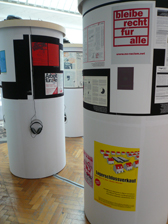 | Migrantische Kämpfe - Kämpfe der Migration Installation im Rahmen von "Crossing Munich, Orte, Bilder und Debatten der Migration" Rathausgalerie, München Simon Goeke, Peter Spillmann Bisher ist die Geschichte der Proteste und Kämpfe der MigrantInnen der ersten Stunden der „Gastarbeitsära“ nur in sehr geringem Umfang aufbereitet worden. Allerdings können die Recherchen von „Migrantische Kämpfe Kämpfe der Migration“ deutlich machen, in welchem breitem politischen Ausmaß bereits die sogenannte erste Generation aktiv war. Die Arbeit „Migrantische Kämpfe Kämpfe der Migration“ hat aufbauend auf intensiver Archivrecherche in Betriebs-, Stadt- , und selbstorganisierten Bewegungsarchiven sowie Zeitzeugeninterviews eine ganze Bandbreite von selbstorganisierten politischen Projekten innerhalb und außerhalb der Gewerkschaften, in Verbindung mit der Studierendenbewegung seit 1964 und mit der Betriebsarbeit verschiedenster linker Gruppierungen rekonstruieren können. Dabei läßt sich zeigen, dass neben einer starken exilpolitischen Organisierung die kleineren und größeren Kämpfe von Anfang an einen entscheidenden Bezug auf die Arbeits- und Lebensbedingungen aufwiesen, die MigrantInnen in München und Umgebung vorgefunden haben. So kann aufbauend auf den gesammelten Materialen unter anderem die sogenannte Kindergeldkampagne oder die Kampagne für kommunales Wahlrecht, sowie die Geschichte eines „Wilden Streiks“ von italienischen Arbeitern bei BMW, dem sogenannten „Italienerstreik“, nachgezeichnet werden. Bei der gestalterischen Umsetzung des Themas stand die Frage von Sichtbarkeit und Öffentlichkeit im Zentrum. Während Migration über Jahrzehnte in erster Linie als Problem medial überpräsent ist, treten das Alltagsleben und das politische und kulturelle Wirken von MigratInnen kaum ins Bewusstsein der Öffentlichkeit. Einzelne Geschichten und Materialien zu politischen Aktionen von MigrantInnen werden deshalb in der Ausstellung manifestartig in Form von Plakaten an mehrere Litfasssäulen geschlagen. Eine Mehrfachprojektion auf die Rückwand des Ausstellungsraumes lässt in ständig ändernden Konstellationen von Bildern eine Vielzahl von politischen Aktionen, Momenten des Arbeitsalltags und des privaten und kulturellen Lebens aus der Perspektive der Migration sichtbar werden. An mehreren Hörstellen kommen die MigrantInnen selber zu Wort. Siehe auch: > Crossing Munich > "Münchner Wege" - Regierungslaube Link: > www.crossingmunich.org |