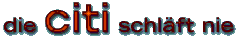 Schrifttafel: THE CITI NEVER SLEEPS. CITIBANK. Infos: